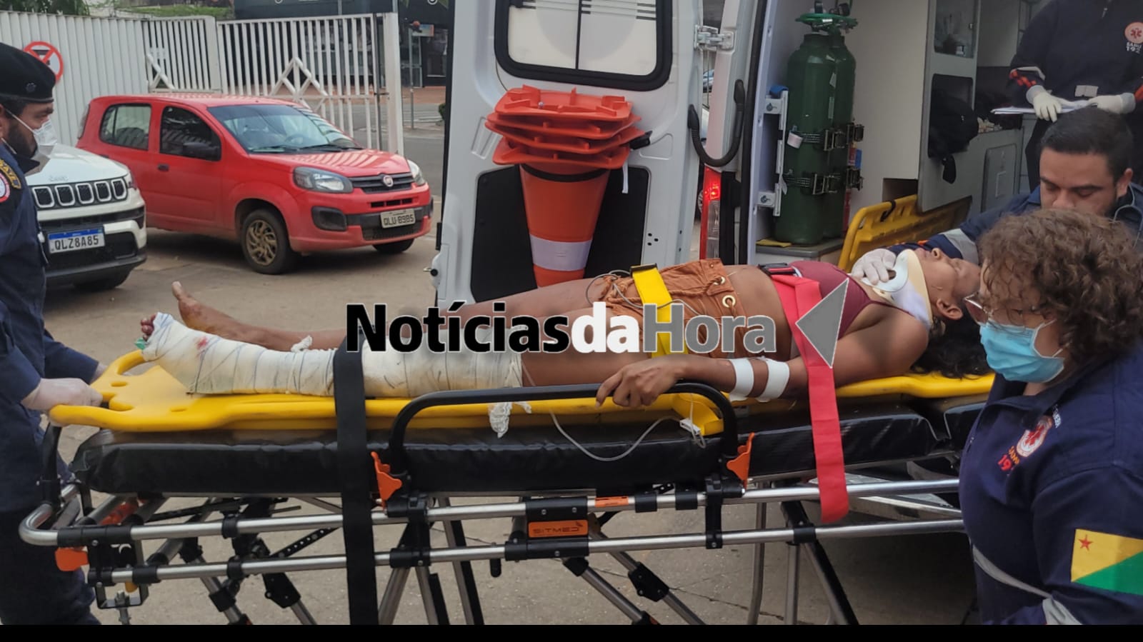 M.J.N.S. e C.F.S.V., ambos com 17 anos, Cleydiane dos Santos Cavalcante e Rone Duarte Gomes também foram conduzidos ao hospital, todos apresentando escoriações e evidências de traumatismo craniano.